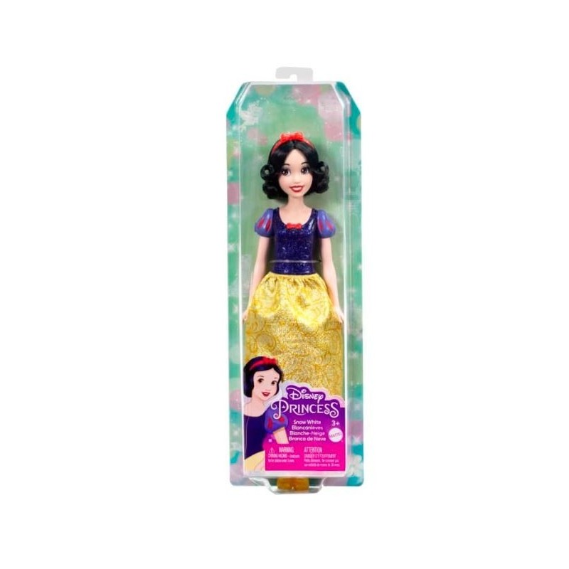 Przedstawiamy lalkę Śnieżkę inspirowaną życzliwą i wytrwałą księżniczką z filmu Królewna Śnieżka i siedmiu krasnoludków Disneya. Ta lalka do ustawiania w różnych pozach ma mieniący się strój i akcesoria, na które składają się buciki...