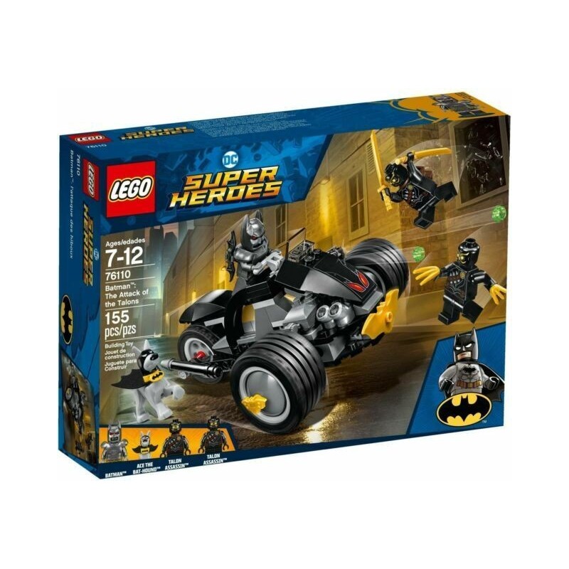 Pomóż Batmanowi™ i jego pieskowi Ace’owi™ pokonać zabójców z grupy Szponów™ w zestawie LEGO® DC Super Heroes 76110 Batman: atak Szponów™. Znajdziesz w nim motocykl Batmana z dwoma miotaczami klocków i miejscami do przyczepienia dołączonych broni i akcesoriów Batmana. W zestawie są też trzy minifigurki z bronią, dzięki czemu zabawa w odgrywanie bitew będzie jeszcze ciekawsza.