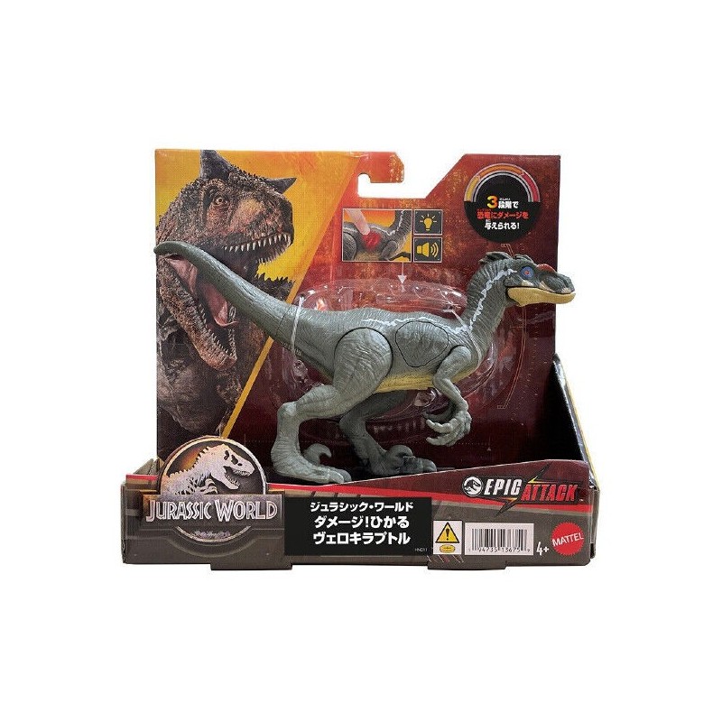Ta figurka dinozaura Welociraptor wprowadza świat Jurassic World do domu z misją pobudzenia wszystkich zmysłów za pomocą 3 poziomów intensywnego uszkodzenia. Zabawka z dinozaurem ma interaktywny panel uszkodzeń, który zapala się wraz ze wzrostem poziomu efektów świetlnych i dźwiękowych. Ożyw dinozaura za pomocą rzeczywistości rozszerzonej! Zeskanuj ukryty kod śledzenia w bezpłatnej aplikacji Jurassic World Facts za pomocą kompatybilnego urządzenia z systemem Android lub iOS, aby odblokować doświadczenia i gry AR! Kolory, wymiary i zdobienia mogą się różnić.