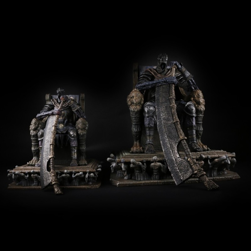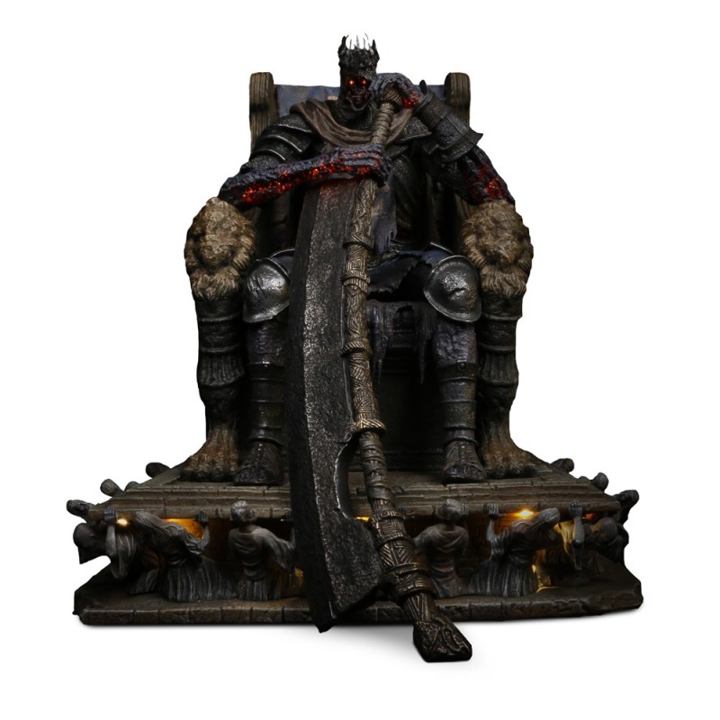 Yhorm the Giant z Dark Souls III (Bandai Namco). Ten kolosalny boss, znany również jako Lord of Cinder, jest rozpoznawalny po swoich ogromnych rozmiarach, ciężkiej maczecie oraz świecących czerwonych oczach i skórze. Chcieliśmy przedstawić Yhorma w jego najbardziej ikonicznej pozie, gdy siedzi na swoim imponującym tronie. Dużym dodatkowym plusem tej większej wersji jest to, że oczy, części skóry Yhorma i podstawa mogą się świecić i świecić dzięki urządzeniom LED, które nadają temu arcydziełu zupełnie nowy wymiar.