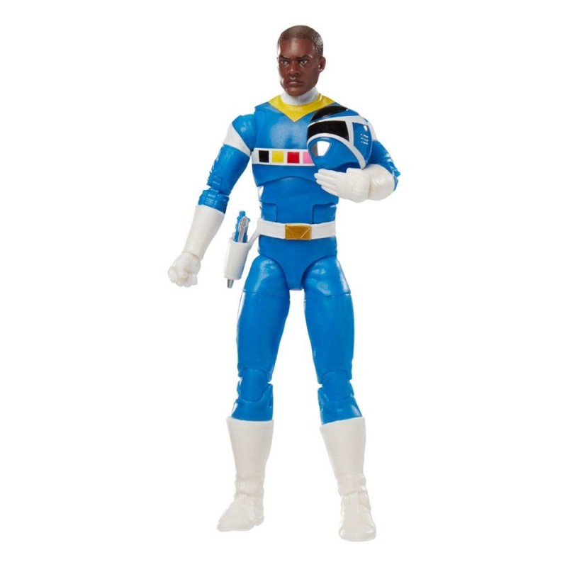 Figurka Lightning Collection In Space Blue Ranger & Galaxy Glider ma najwyższej jakości malowanie i dekoracyjne detale inspirowane serialem, ponad 20 punktów artykulacji dla wysokiej możliwości pozowania, wymienne głowy do wyświetlania Rangera z hełmem lub bez, Astro Axe i Astro Blaster, akcesoria z elementem z efektem wybuchu i dodatkową parę rąk dla większej liczby sposobów zabawy lub ekspozycji.
