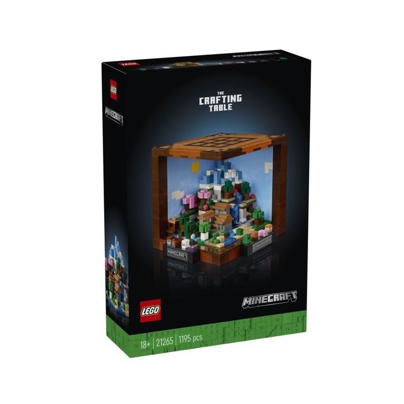 Model przedstawia kultowy stół warsztatowy z gry. Wewnątrz znajduje się pięć minimodułów zawierających 12 biomów z Minecrafta, w tym tajgę z jaskinią naciekową, równiny z wioską, lodowe kolce z igloo, wiśniowy gaj z opuszczonym szybem kopalnianym i mroczną głębię z obszerną jaskinią. W zestawie jest też osiem mikrofigurek: Steve, Alex, szkielet, wiedźma, Creeper, osadnik, krowa i świnia. Minimodele i mikrofigurki można usunąć z głównego modelu, aby eksponować model na różne sposoby. Z przodu modelu można umieścić naklejki z hasłami z gry. Budowanie ułatwi cyfrowa wersja instrukcji w aplikacji LEGO Builder.