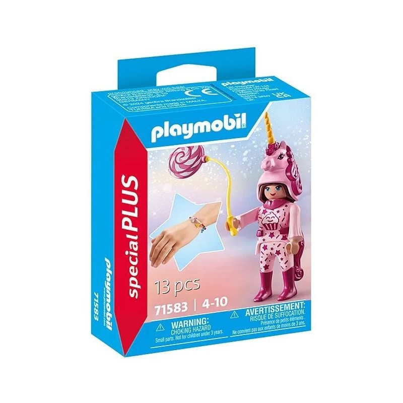Wybierz się na bal przebierańców w stroju słodkiego jednorożca PLAYMOBIL Special Plus z silikonową bransoletką na rękę i trzema zawieszkami.