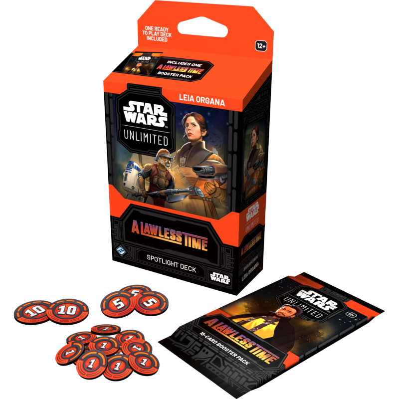 Star Wars: Unlimited Card Game - A Lawless Time - Spotlight Deck to gotowa do gry talia, w której znajdziesz wszystko, czego potrzebujesz, aby rozpocząć starcie i doskonale wykorzystać zdolności lidera.