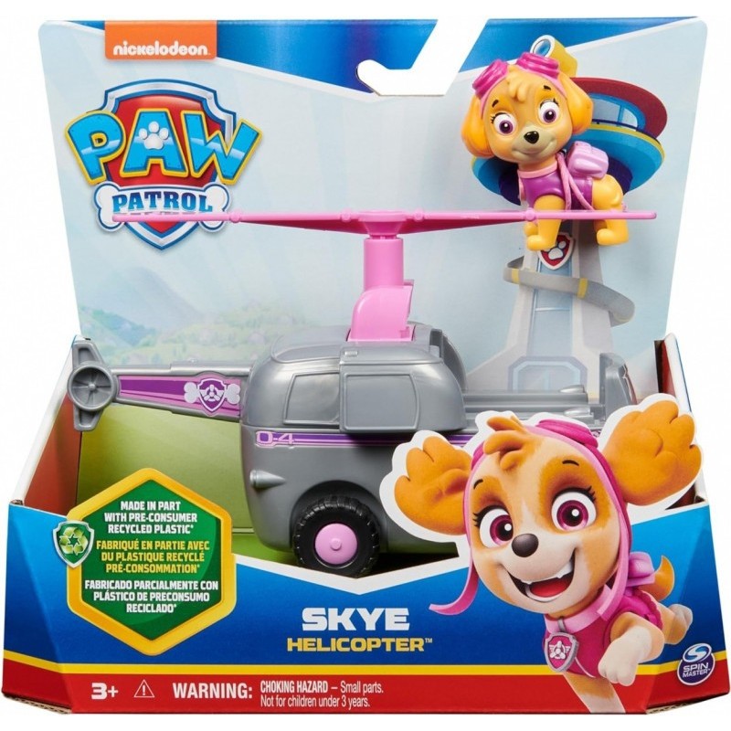 Psi Patrol jest na fali w swoich pojazdach ratunkowych. Dołącz do Skye podczas pełnych akcji misji z jej śmigłowcem. Gdy nadejdą kłopoty, umieść Skye (figurka w zestawie) w fotelu pilota i ruszaj na ratunek dzięki działającym kołom do jazdy po ziemi i obracającemu się wirnikowi do lotu w powietrzu. Dzięki autentycznym detalom i realistycznym funkcjom, ukochana ekspertka lotnictwa z Psiego Patrolu i jej śmigłowiec ożywią wszystkie emocje związane z serialem. Figurka Skye i jej pojazd są produkowane w sposób ekologiczny i wykonane w co najmniej 65, z plastiku pochodzącego z recyklingu. Połącz siły z resztą szczeniaków i ich pojazdami ratunkowymi (każdy sprzedawany osobno) i pomóż opanować sytuację w Zatoce Przygód. Aby rozegrać jeszcze więcej zabawnych i ekscytujących misji inspirowanych Psim Patrolem, zbierz wszystkie zabawki z filmu Psi Patrol, takie jak niesamowity Lotniskowiec dowodzenia, a także wszystkie specjalne zabawki z serii Psi Patrol dla dziewczynek i chłopców, takie jak figurki i zestawy Wielkie Szczeniaki, Wodny Patrol i Big Truck Pups (każdy sprzedawany osobno). Ciesz się niekończącymi się przygodami ze swoim ulubionym bohaterem w jego charakterystycznym pojeździe.